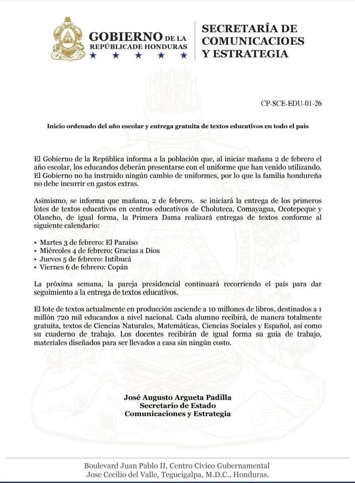 Según comunicado del ministerio de comunicaciones y estrategia, se usará el uniforme normal en todas las escuelas públicas del país.