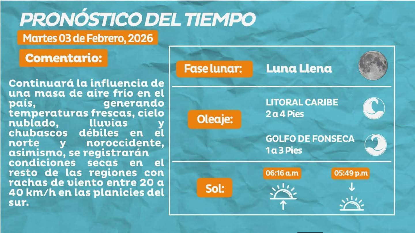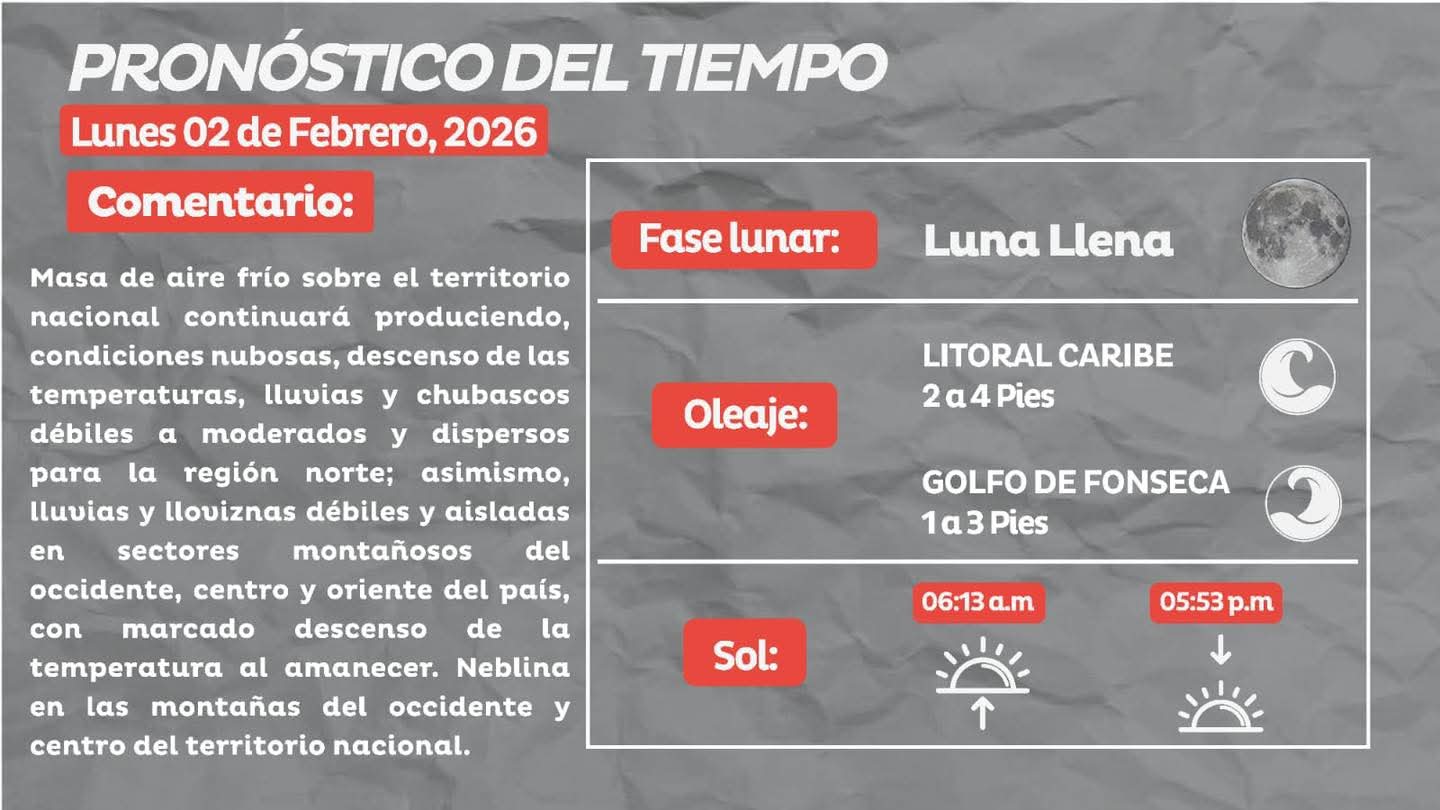 Condiciones del clima en el territorio hondureño para hoy lunes 2 de febrero del 2026